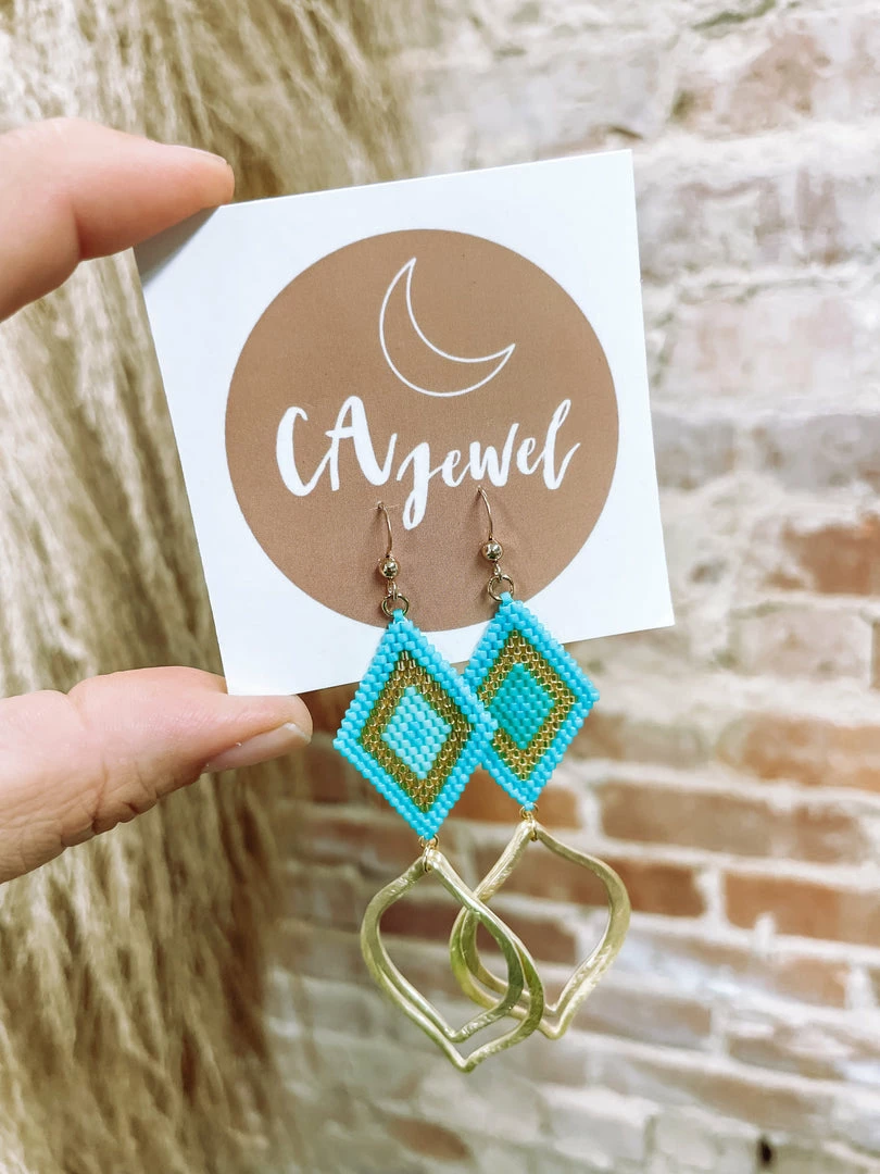 Perfectly polish your summer time looks with the Clear Water Earrings! With turquoise and gold beaded detail + gold dangles, these earrings are a fun pop of color to any outfit!