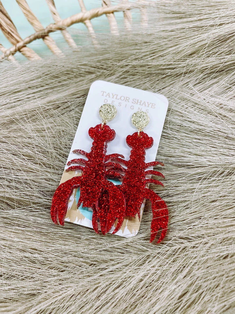 Get ready for crawfish season with our Irene Earrings! Light weight sparkly red crawfish with a touch of gold! So cute and extra fun!