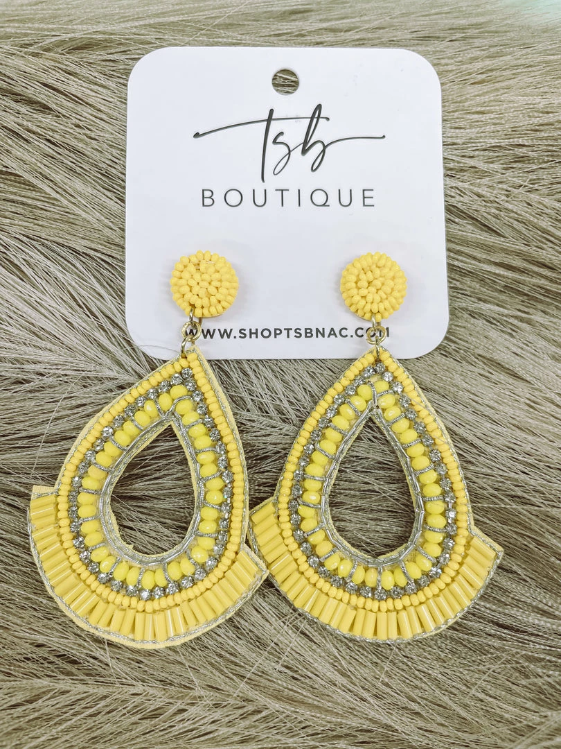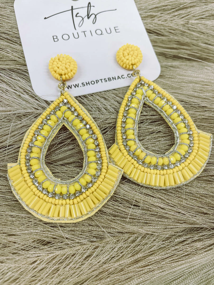 Texas Bling Jewelry Yellow Beaded Teardrop Earrings
