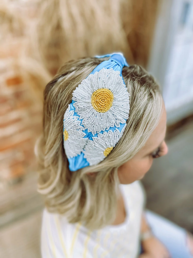 Floral + Beads — Every gals best friends! This headband is a team favorite! Featuring a center knot and floral beaded daisies throughout! Style with a ponytail or curls for totally cuteness!