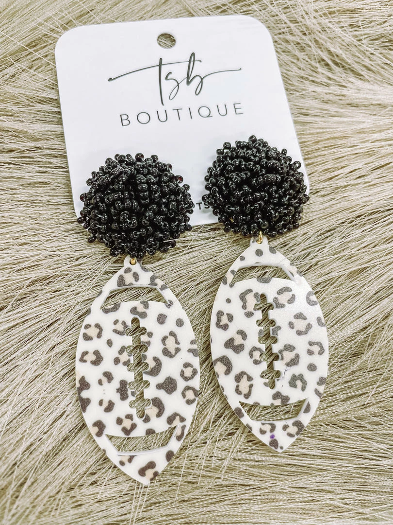 Show your school spirit wherever you go in the Leopard Pom Earrings! Designed with a black pom element, these earrings are perfect for game days or any football event!