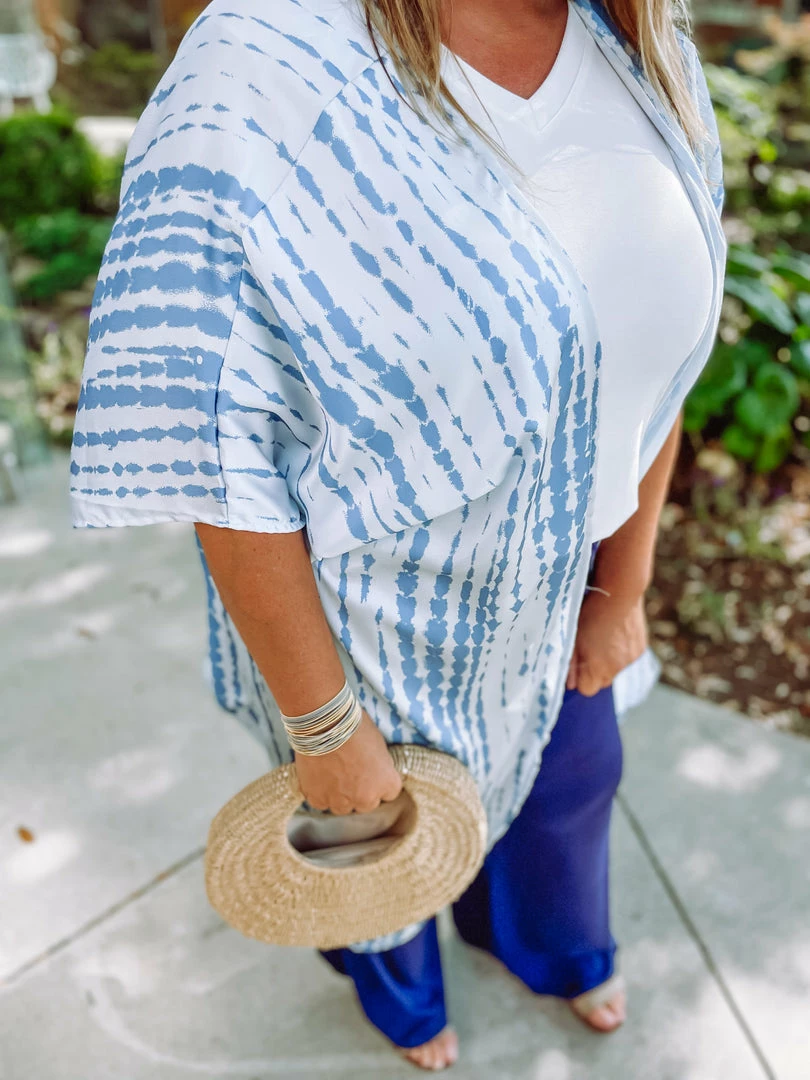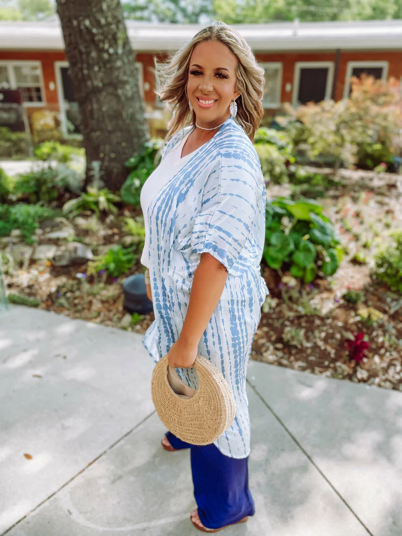 The Lucia Bamboo Belted Kimono Cover Up brings tasteful, fun, & vibrant fashion to your wardrobe! Tailored with dolman sleeves, open front, and functional belt tie at your waist! This sweet kimono offers a variety of looks! Perfectly paired with our Senna Wedges, Sophie Smocked Waist Pants, Jana Top and Skylar Round Straw Braided Bag.