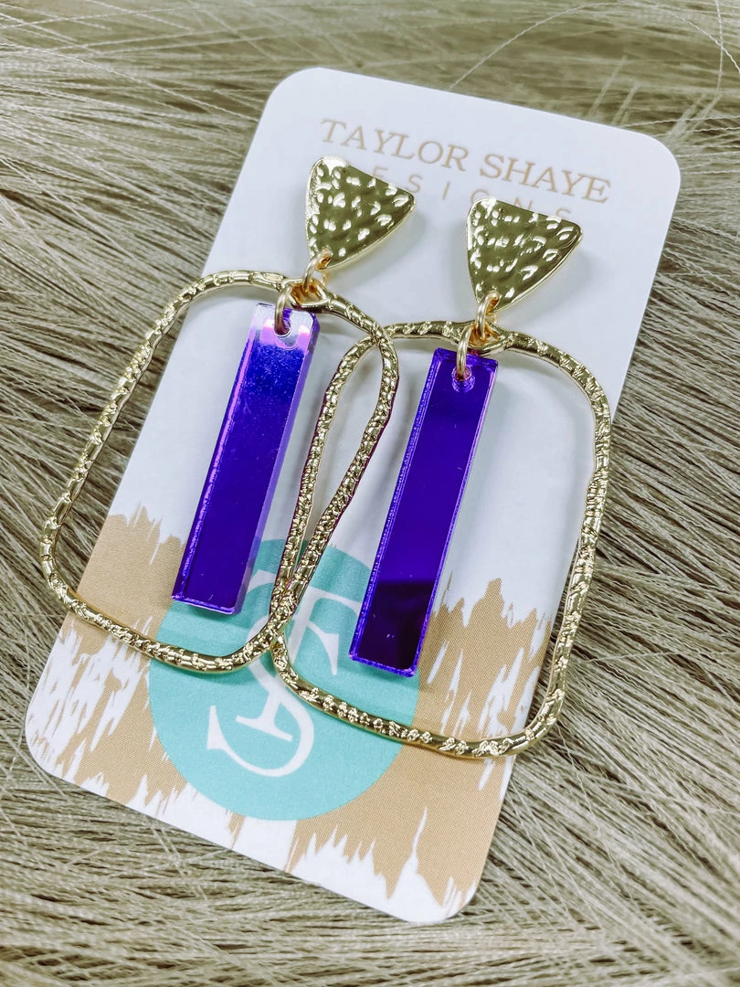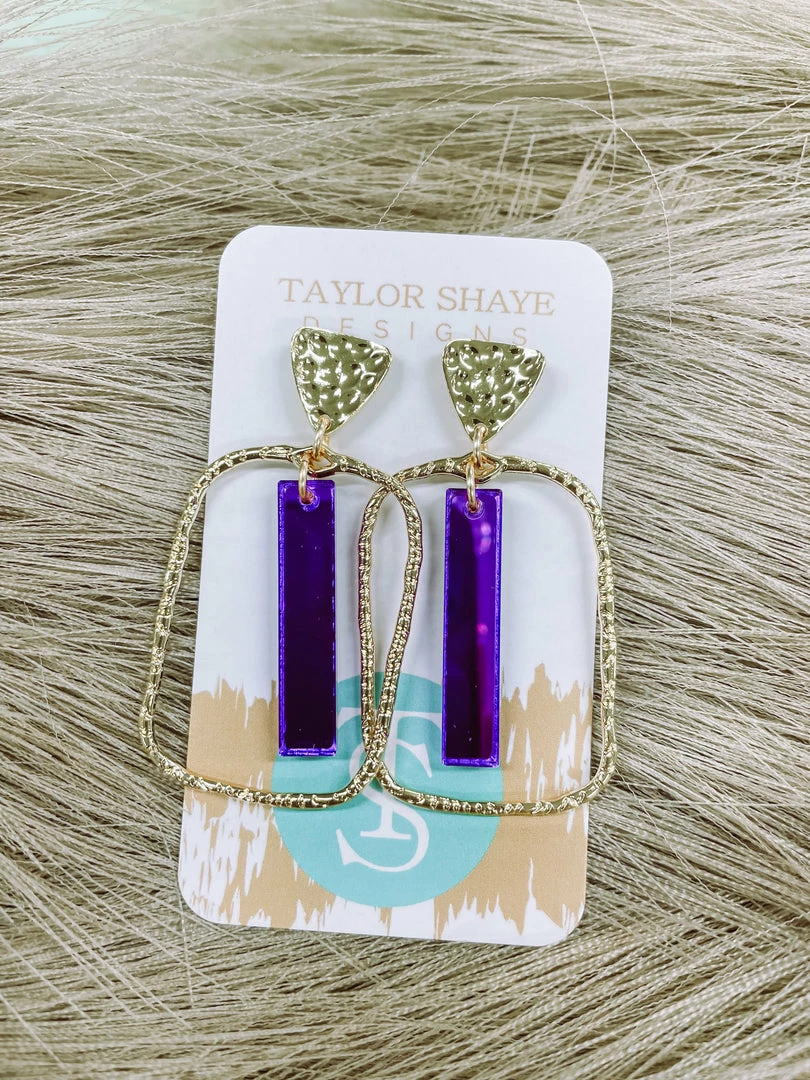 Texas Bling Mae Rectangle Stick Hoops- Purple Jewelry
