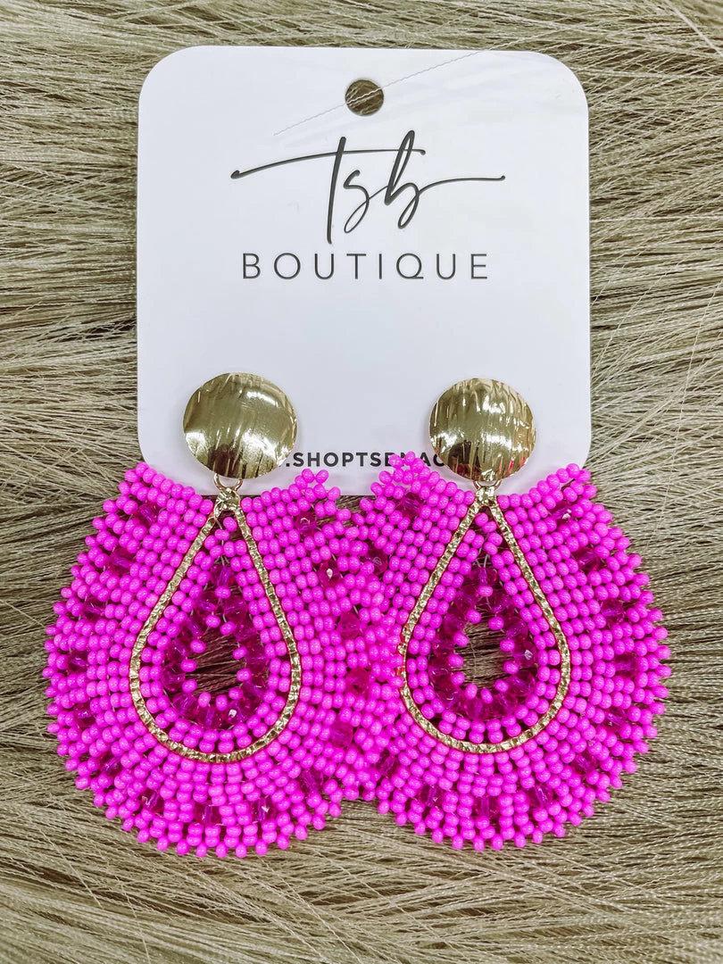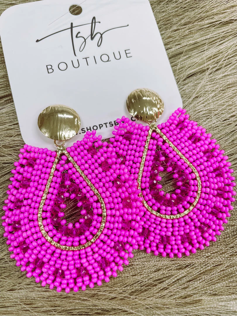 Texas Bling Mariana Hot Pink Beaded Earrings Jewelry