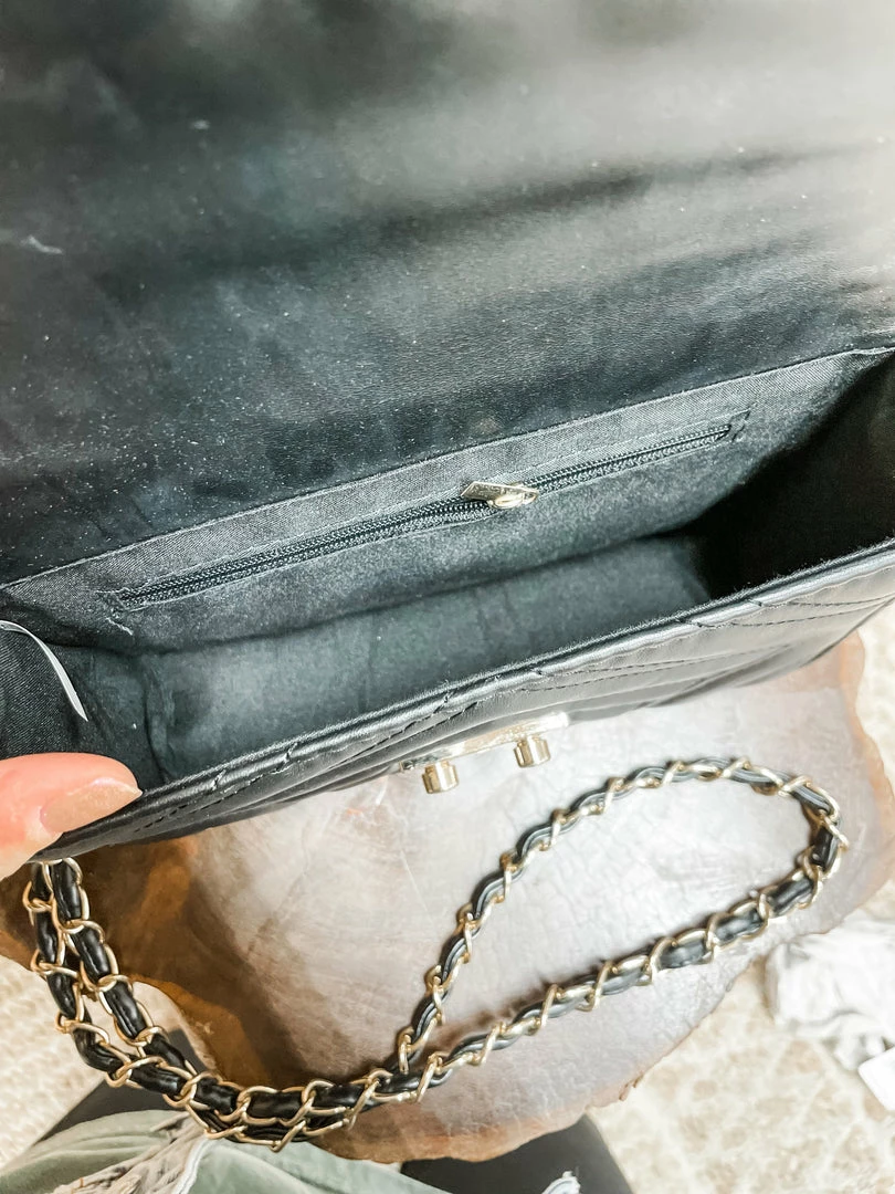 Strut your Stuff in our Paris Crossbody! Showcasing faux leather + single compartment storage + pinch lock clasp!! This classic black item will dress up all your outfits and is perfect for all year around