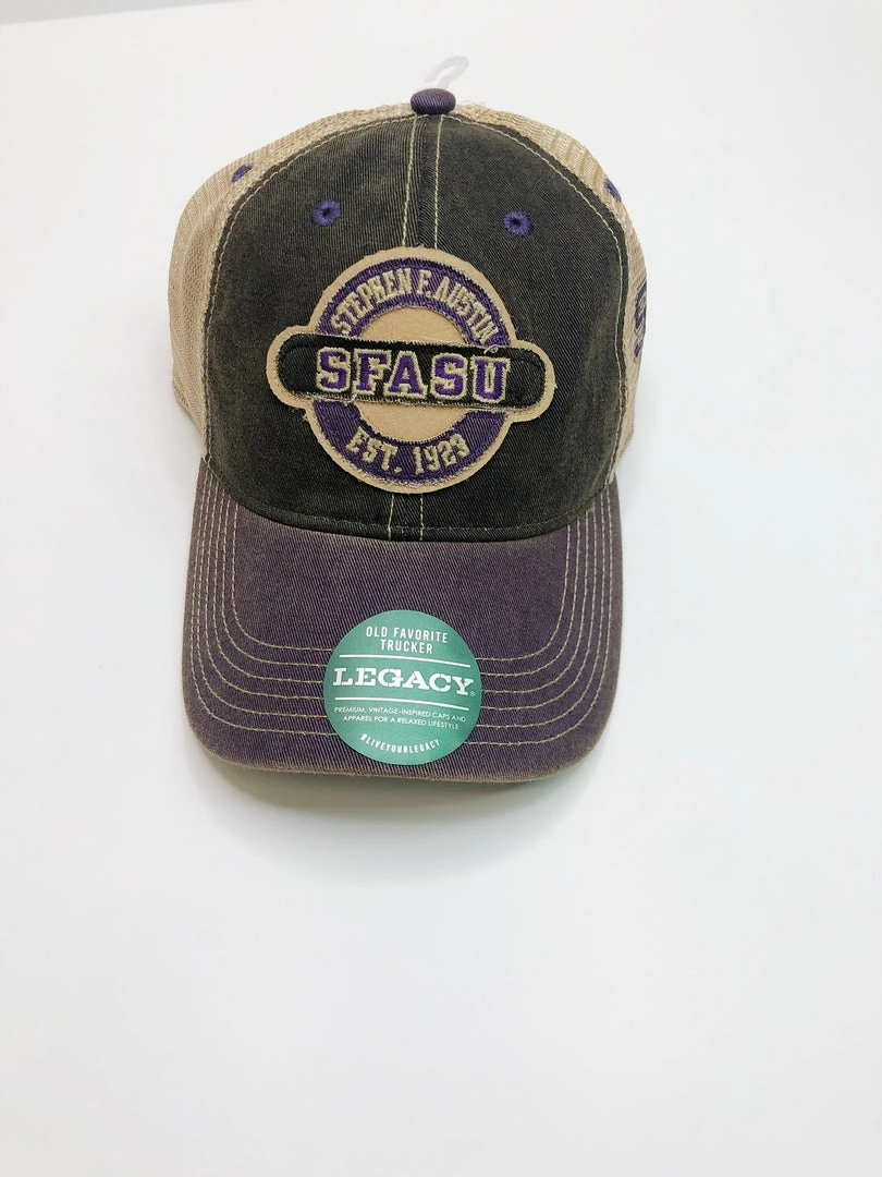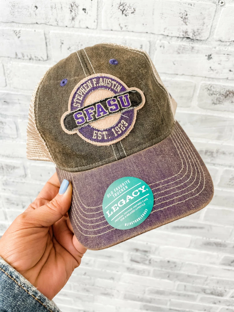Guys and girls love our new vintage purple trucker hat! It’s got SFA on the side of the mesh too! Adjustable back!
