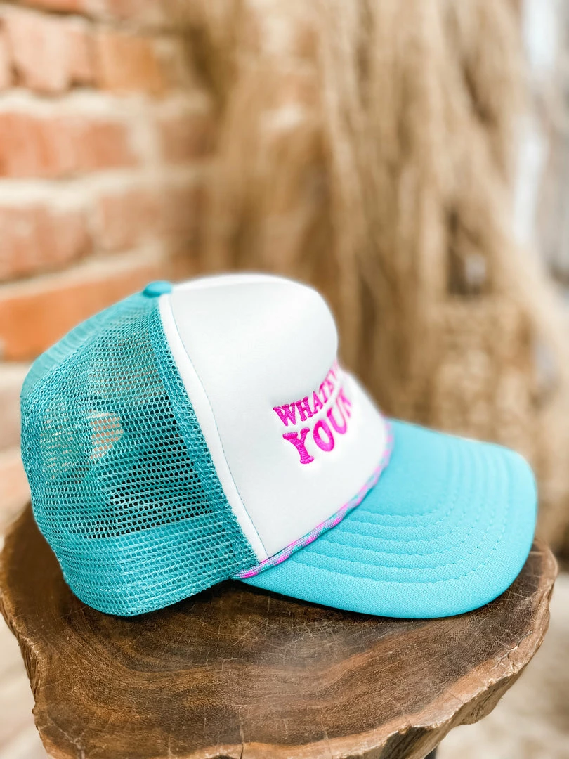 The cutest cap ever! We are crushing big time on the color combo! With an adjustable snap back this one of a kind cap is a summer essential!