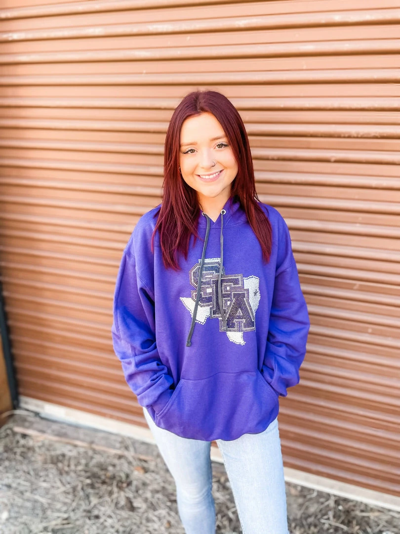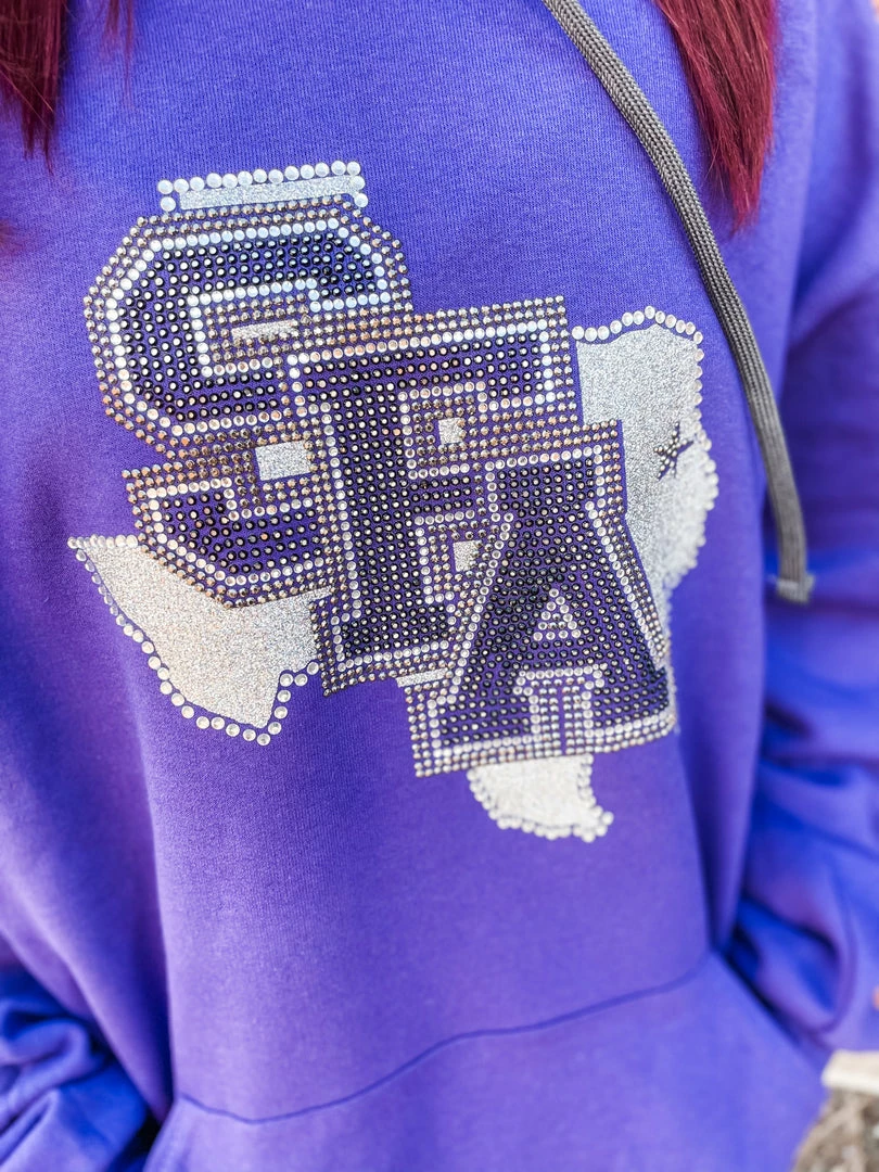 This warm and cozy SFA hoodie is the perfect blend of comfort and bling! Super sparkly for your next SFA event!